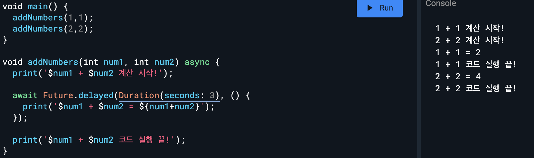 💡 async & await는 Future을 더 쉽게 다루기 위한 키워드이다.