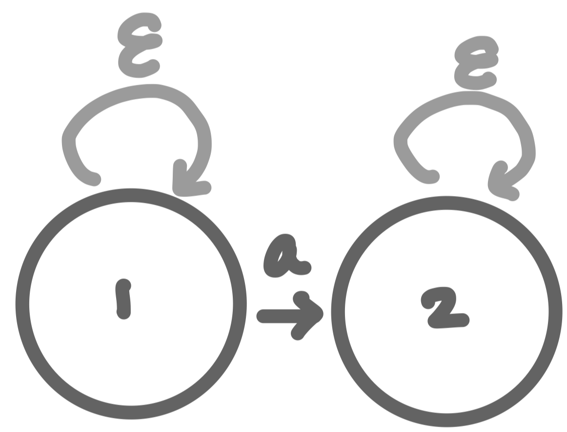 ε는 모든 문자열에 루프로 붙어있는데 따로 설정하지 않는다면 상태에 영향을 주지 못한다. 숫자로 비유하자면 0이 다른 숫자에 아무리 더해져도 영향을 주지 못하는 것과 같다.