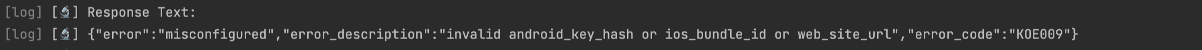 이 에러는 다른 에러코드랑 다른 로그랑 너무 섞여있어서 에러 코드 자체를 못 보고 있다가 거의 5시간 넘게 걸려서 '에러코드'를 찾았던 것 같다. 카카오에서 API를 사용할 때 자주 생기는 에러코드에 대해 정리한 곳에도 알려주는 에러인데, '등록되지 않은 플랫폼에서 엑세스 토큰을 요청하는 경우'에 발생하는 에러라고 한다. 따라서,, 나는 안드로이드랑 ios 플랫폼 등록 설정이랑 네이티브 앱 키가 잘 못 되었나 싶어 등록만 열번을 했는데 해결되지 않았었다. 그래서, 서치해보다 보니 '해시키 값 오류'일 수도 있다고 하는 글을 봐서 Libressl 재설치해보다가 안돼서 openssl로 갈아타고 예전 버전으로 설치도 해보고 별 난리를 다 쳤었는데 결론은 뜬금 없는 곳에서 나왔다. 그 전까지는 나오지도 않던 에러 메시지를 찾아서 확인해보니,